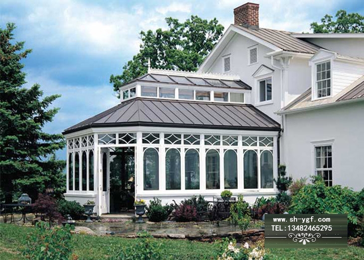 別墅陽光房設計根據客戶需求,設計大氣,用材高檔匹配原來房屋風格,同時又融入院落景觀